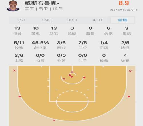赛季至今,威少爷场均14.4分6.4篮板6.3助攻,如果不算赛季初打替补且没什么球权的比赛,威少爷的数据还会更好看。