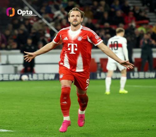 此役客场对阵斯图加特,下半场第60分钟替补登场的凯恩打入三球,帮助拜仁慕尼黑5-0大胜对手。