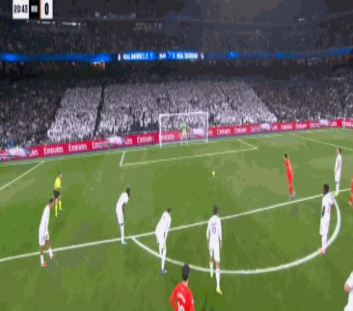 第55分钟贡萨洛加西亚半单刀的机会没有把握住,被回防的防守球员将皮球破坏,第63分钟卡瓦哈尔头球解围失误,给了穆尼奥斯直接打门的机会,但被库尔图瓦神勇化解,第90分钟皇马获得前场右侧定位球的机会,居莱尔开到前点,维尼修斯头球建功,可惜VAR介入后认为越位,熊皇无缘帽子戏法。