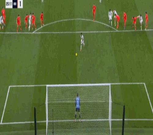 第5分钟,阿诺德助攻,贡萨洛-加西亚破门,皇马1-0