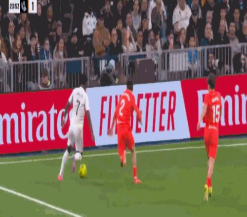 第48分钟,梅开二度,维尼修斯再次造点并罚入,皇马4-1