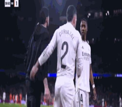 第59分钟,皇马换人,阿拉巴和卡瓦哈尔替补登场